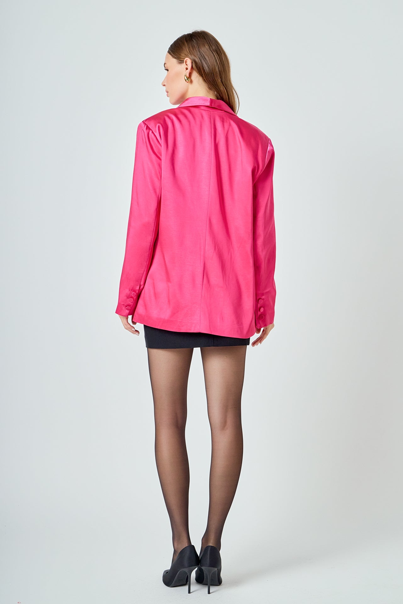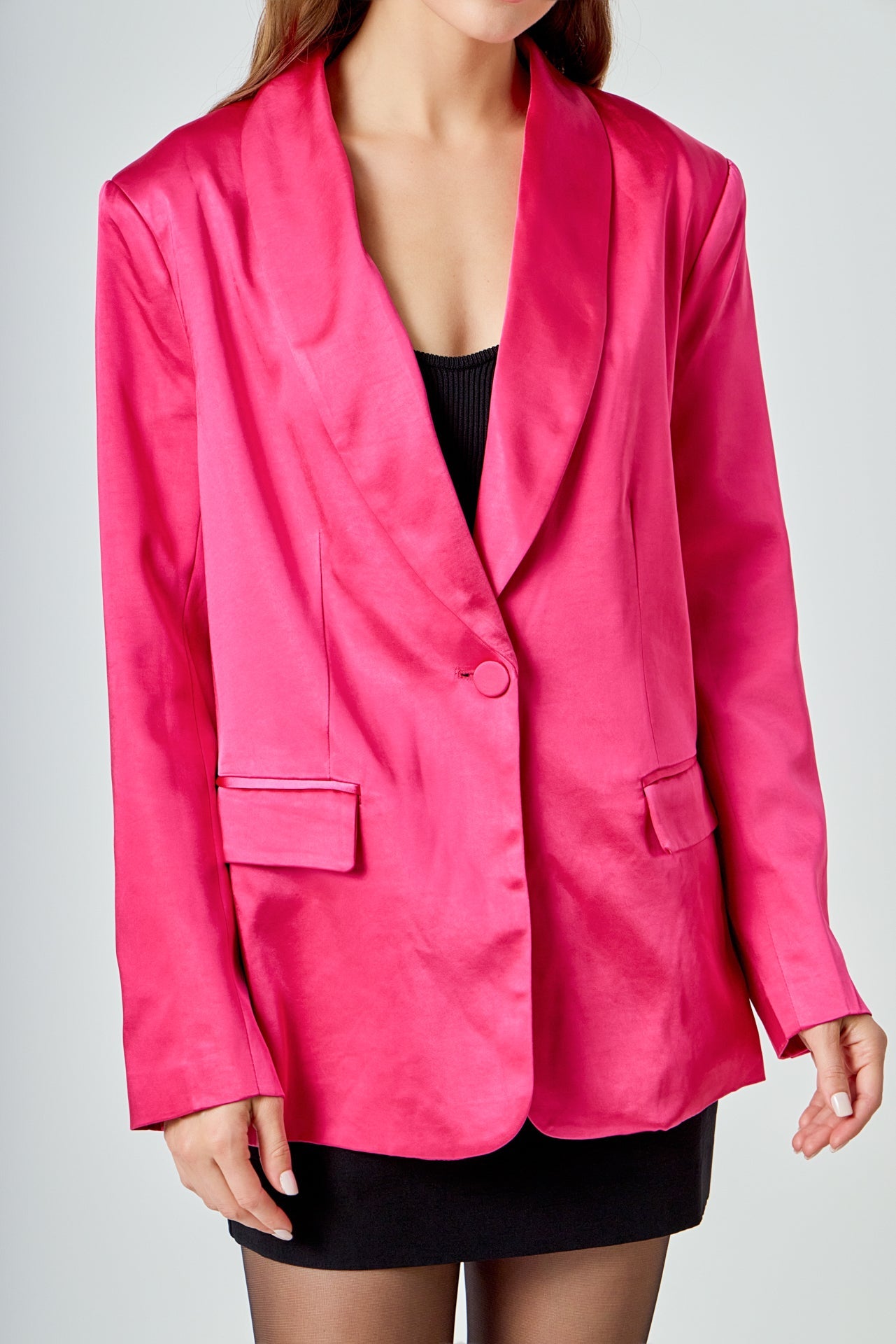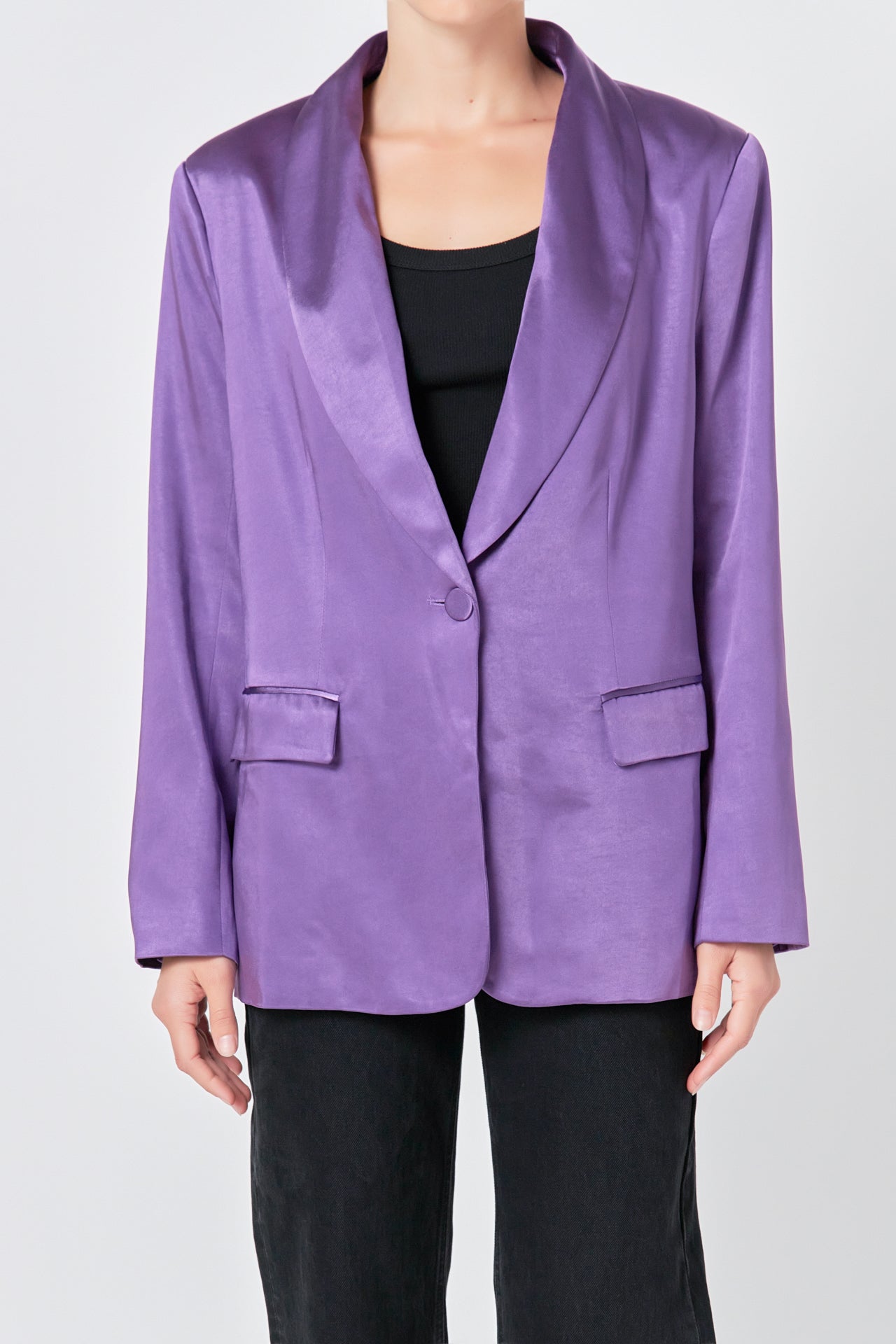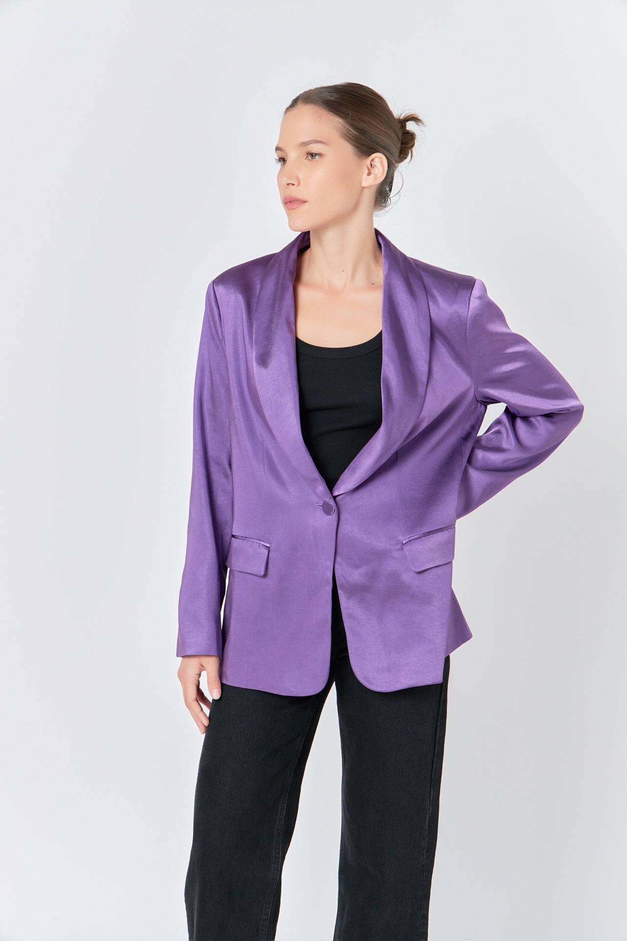Elevate your style and step up your game with this blazer. With its sleek and shiny satin finish, this blazer is perfect for making a statement. It features a shawl collar, single button closure and welt pockets with flap. Plus, it's machine-washable so you can keep it looking fresh all year long. Whether you're dressing up for a formal event or just want to add a touch of sophistication to your everyday look, this blazer is the perfect choice.